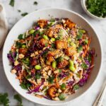 - Garnish and serve: Sprinkle extra chopped cilantro, sesame seeds, and chopped peanuts over the salad for added crunch and flavor. Serve immediately and enjoy!