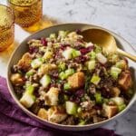 Allow the stuffing mixture to cool completely before you loosely stuff your turkey. This helps prevent overcooking the turkey and ensures the stuffing cooks evenly. Of course, you can also bake this stuffing separately in a casserole dish if you prefer.