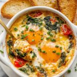 - Bake with Eggs: Return the dishes to the oven and bake for an additional 10 minutes, until the egg whites are set but yolks remain slightly runny (or cooked to your preference).