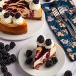 I personally love topping this cheesecake with a handful of fresh blackberries that echo the swirl inside, along with a dusting of powdered sugar for a delicate, elegant touch. Sometimes I add a sprig of fresh mint to brighten the plate visually and add a hint of herbal freshness that pairs surprisingly well.