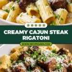 This Cajun Steak Tips in Cheesy Rigatoni Parmesan Sauce is a flavorful and comforting dish combining tender, spicy steak cubes with perfectly cooked rigatoni pasta tossed in a rich, creamy Parmesan and mozzarella sauce. Perfect for a hearty weeknight meal, it features a blend of Cajun spices that add a smoky kick balanced by the smooth, cheesy sauce.