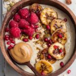 - Assemble the Oatmeal: Spoon the warmed or cold oatmeal into serving bowls. Top with the caramelised bananas, fresh raspberries, pomegranate seeds, a dollop of your favorite nut butter, and a generous sprinkle of homemade granola for added texture and flavor.