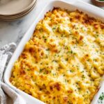 Transfer your mixture to a 9×13-inch casserole dish—no need to grease it—and sprinkle the remaining cheese evenly on top. Pop it into your preheated 400°F oven and bake for about 15 to 20 minutes, until the cheese on top bubbles and turns a gorgeous golden brown. This bubbling, cheesy crust is what makes everyone swoon!