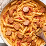 This Cheesy Kielbasa Pasta is a comforting and flavorful one-pan meal combining smoky kielbasa sausage, tender penne pasta, Italian-seasoned tomatoes, and a creamy cheese sauce. Easy to prepare on the stovetop, it delivers a satisfying blend of savory, cheesy goodness in under 40 minutes, perfect for a weeknight dinner.