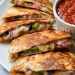 These pizzadillas pair beautifully with a simple green salad dressed in tangy vinaigrette or a cup of minestrone soup for a comforting Italian-inspired meal. Sometimes, I’ll serve them alongside garlic roasted potatoes for a hearty dinner.