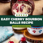 Delicious and easy-to-make Cherry Bourbon Balls featuring a rich blend of bourbon-soaked pecans, maraschino cherries, powdered sugar, and semi-sweet chocolate coating. Perfect as festive treats or party snacks, these bite-sized delights combine nutty, boozy, and chocolatey flavors, topped with a candied cherry half for a charming finish.
