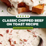 Chipped beef is thinly sliced, dried, and salted beef, often preserved in jars or packets. It’s traditionally used in creamy gravies like this recipe and has a salty, savory flavor that pairs perfectly with creamy sauces and toast.