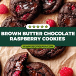 These Chocolate Raspberry Cookies combine rich brown butter, dark and milk chocolate chunks, and fresh or frozen raspberries for a fudgy, gooey treat. The brown butter adds a deep nutty flavor and the raspberries bring a burst of tartness, making these cookies uniquely delicious with a perfect balance of sweetness and texture.