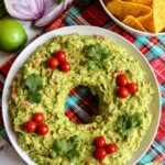 Celebrate the holidays with this festive Christmas Guacamole Wreath Appetizer, a delicious and visually appealing dish made from ripe avocados, diced tomatoes, and fresh herbs. Perfect for parties, this easy-to-make guacamole is shaped like a holiday wreath and garnished with cherry tomatoes and cilantro for a vibrant, seasonal touch.