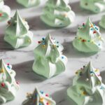 These festive Meringue Christmas Trees are light, airy, and perfectly sweet treats to celebrate the holiday season. Whipped egg whites are transformed into fluffy, green-colored meringue dollops stacked to resemble Christmas trees, topped with colorful sprinkles. Baked low and slow to achieve a crisp exterior and melt-in-your-mouth texture, these delightful meringues are a charming addition to any holiday dessert table.
