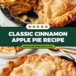 This Cinnamon Apple Pie Recipe freezes beautifully! I freeze the whole pie (uncooked) wrapped in plastic wrap and foil, then bake it straight from frozen — just add about 15 minutes to the baking time. If freezing after baking, wrap each slice tightly to preserve moisture and flavor.