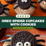 Delight in these adorable and delicious Cookies & Scream Spider Cupcakes featuring white cake mixed with crushed Oreos, topped with Oreo-spiked buttercream and decorated with Halloween Oreos and candy eyes for a fun, festive treat perfect for kids and adults alike.