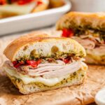 This Copycat Starbucks Turkey Pesto Sandwich is a delicious and easy-to-make panini sandwich that features savory deli turkey, creamy provolone cheese, flavorful basil pesto, and sweet roasted red peppers, all on crispy toasted ciabatta bread. Perfect for a quick lunch or light dinner, this sandwich combines fresh ingredients and bold flavors cooked to perfection on a panini grill or stovetop.