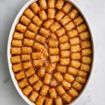 - Add tater tot topping and bake: Arrange the frozen tater tots in a single layer on top of the casserole. Bake uncovered in the preheated oven for 40-45 minutes until the casserole is bubbly and the tater tots are golden brown and crispy on top.