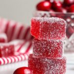 These Festive Cranberry Jelly Candies are perfectly tangy and sweet, coated with sugar for a delightful crunchy exterior. Made with real cranberry juice and gelatin, these jelly candies are a charming homemade treat ideal for the holiday season or any special occasion.