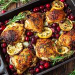 This Baked Cranberry Chicken with Rosemary is a flavorful, festive dish perfect for Thanksgiving dinner. Tender chicken pieces are marinated with garlic, rosemary, and paprika, then seared to golden perfection before being baked with a tangy, sweet cranberry sauce. The addition of fresh cranberries, brown sugar, and lemon creates a vibrant and aromatic meal that’s both comforting and elegant.