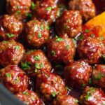 These Cranberry Meatballs are a delightful appetizer perfect for holidays or parties, featuring frozen party meatballs slow-cooked in a sweet and tangy cranberry barbecue sauce. The sauce is a flavorful blend of fresh cranberry sauce, hoisin, ketchup, and a hint of spice, creating a luscious coating for tender meatballs, garnished with fresh parsley for a vibrant finish.