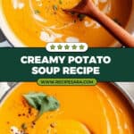 For special occasions, I like to serve this Creamy Double Potato Soup Recipe in mini pumpkin bowls or hollowed-out sourdough bread bowls — it makes the meal feel so cozy and festive. You can also swirl in a little pesto or hot sauce on top before serving for visual interest and added layers of flavor.