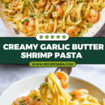 - Garnish and Serve: Garnish the pasta with freshly chopped parsley for a bit of color and freshness. Serve immediately while hot. Enjoy your creamy garlic butter shrimp pasta!