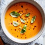 - Serve: Ladle soup into bowls. Garnish with cracked black pepper, additional crushed red pepper flakes, and fresh basil leaves if desired. Serve with crusty bread or a Gooey Mozzarella Grilled Cheese Sandwich for a satisfying meal.