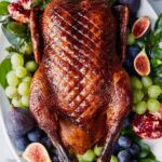 - Rest and serve: Remove the duck from the oven and allow it to rest for 10-15 minutes before carving. Garnish with fresh herbs, pomegranate seeds, figs, and grapes as desired. Serve and enjoy!