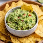 This simple guacamole recipe is a fresh and flavorful Mexican-inspired dip made from ripe avocados, red onion, jalapeno, Roma tomatoes, cilantro, salt, and fresh lime juice. Perfect as a snack, appetizer, or accompaniment to your favorite dishes, this easy-to-make guacamole offers creamy texture with a hint of zest and spice.