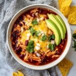 The garnishes are where I have a little fun! I love topping this chili with a dollop of sour cream, a sprinkle of shredded cheddar, and some chopped fresh cilantro. If you want a bit of crunch, tortilla strips or sliced green onions are fantastic additions, too.