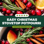 Christmas Stovetop Potpourri is a cozy and fragrant holiday blend made by simmering fresh cranberries, cinnamon sticks, rosemary, cloves, and citrus with water or apple juice on the stovetop. This natural, aromatic simmering mix fills your home with warm, festive scents perfect for the holiday season without the use of artificial fragrances.