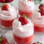 - Assemble the Mousse: Divide the reserved ½ cup of strawberry puree evenly among four small or medium glasses (each glass holds about 1 cup of water). Spoon or pipe the strawberry mousse mixture over the puree layer in each glass.