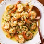 This Shrimp Scampi recipe features large shrimp cooked in a flavorful garlic, red pepper flakes, and herb-infused butter sauce, with vermouth replacing white wine for a unique depth of flavor. It’s a quick yet elegant dish that marries the richness of butter with fresh lemon juice and a mix of parsley, tarragon, and chives, perfect for a sophisticated weeknight dinner or entertaining guests.