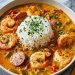 Reheat gumbo gently on the stovetop over low heat, stirring occasionally to prevent burning. Adding a splash of water or broth helps restore the perfect consistency. Avoid microwaving at full power to keep the shrimp from becoming rubbery.