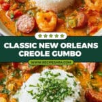 - Traditional Creole gumbo made with a dark roux, blending savory sausage, seafood, and aromatic vegetables.
