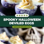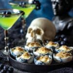 A spooky and delicious Halloween-themed deviled eggs recipe featuring black-stained egg whites and a flavorful, creamy yolk filling, perfect for festive parties or themed gatherings.