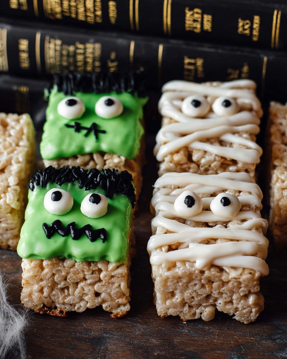 Melt the green and white candy melts separately with 2–4 tablespoons of refined coconut oil or shortening for a nice smooth finish. Dip or drizzle the treats with the green to create a spooky base, then add white candy melts for eyeballs or fun shapes. Place candy eyes while the coating is still warm so they stick nicely. For extra fun, pipe black buttercream frosting details for mouths or spooky accents. This step always brings the treats to life!