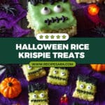 Celebrate Halloween with these fun and festive Halloween Rice Krispie Treats! Made with buttery marshmallows and crisp puffed rice cereal, then decorated with vibrant candy melts and spooky candy eyes, these treats are perfect for parties, bake sales, or quick seasonal snacks that kids and adults will love.
