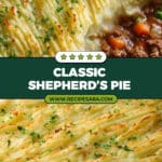 This classic Shepherd’s Pie recipe features a hearty blend of lean ground beef and rich vegetables, topped with creamy mashed potatoes and baked to golden perfection. A comforting, savory dish perfect for family dinners, it combines tender beef simmered in a flavorful red wine and tomato sauce with a crispy bacon addition and fluffy potato topping.