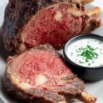 This Bone-In Standing Ribeye Roast is a flavorful and impressive dish perfect for special occasions. Coated in a savory herb and garlic paste, then oven-roasted to a tender, rare to medium-rare finish, it pairs beautifully with roasted baby potatoes and a side of horseradish sauce. The recipe emphasizes a rich, aromatic crust made from fresh thyme, rosemary, garlic, and shallots, ensuring a moist, succulent roast every time.