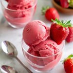 A refreshing and simple homemade strawberry sorbet recipe that requires minimal ingredients and no ice cream machine if using a high-speed blender, perfect for a light, fruity dessert.