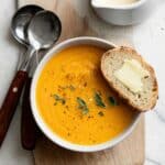 For a cozy dinner party, I’ve served this soup in mini pumpkin bowls—super festive and fun. Another idea I adore is layering the soup with dollops of herbed crème fraîche or a swirl of pesto and freshly cracked black pepper for an elegant look that tastes as good as it looks.