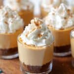 These Mini Pumpkin Pie Cheesecakes are a delightful no-bake fall treat featuring a creamy pumpkin pie-flavored cheesecake layered on a crunchy gingersnap cookie crust. Perfect for Thanksgiving or any autumn gathering, these bite-sized cheesecakes are easy to make, kid-friendly, and serve in convenient shot glasses for a fun presentation.