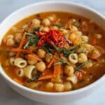 Pasta e Ceci is a traditional Italian chickpea and pasta stew that combines tender chickpeas, grated vegetables, and small pasta in a savory broth. This comforting and hearty dish is perfect for a filling meal and uses simple, wholesome ingredients to create rich flavors with herbs and a touch of heat from fresh cayenne pepper.