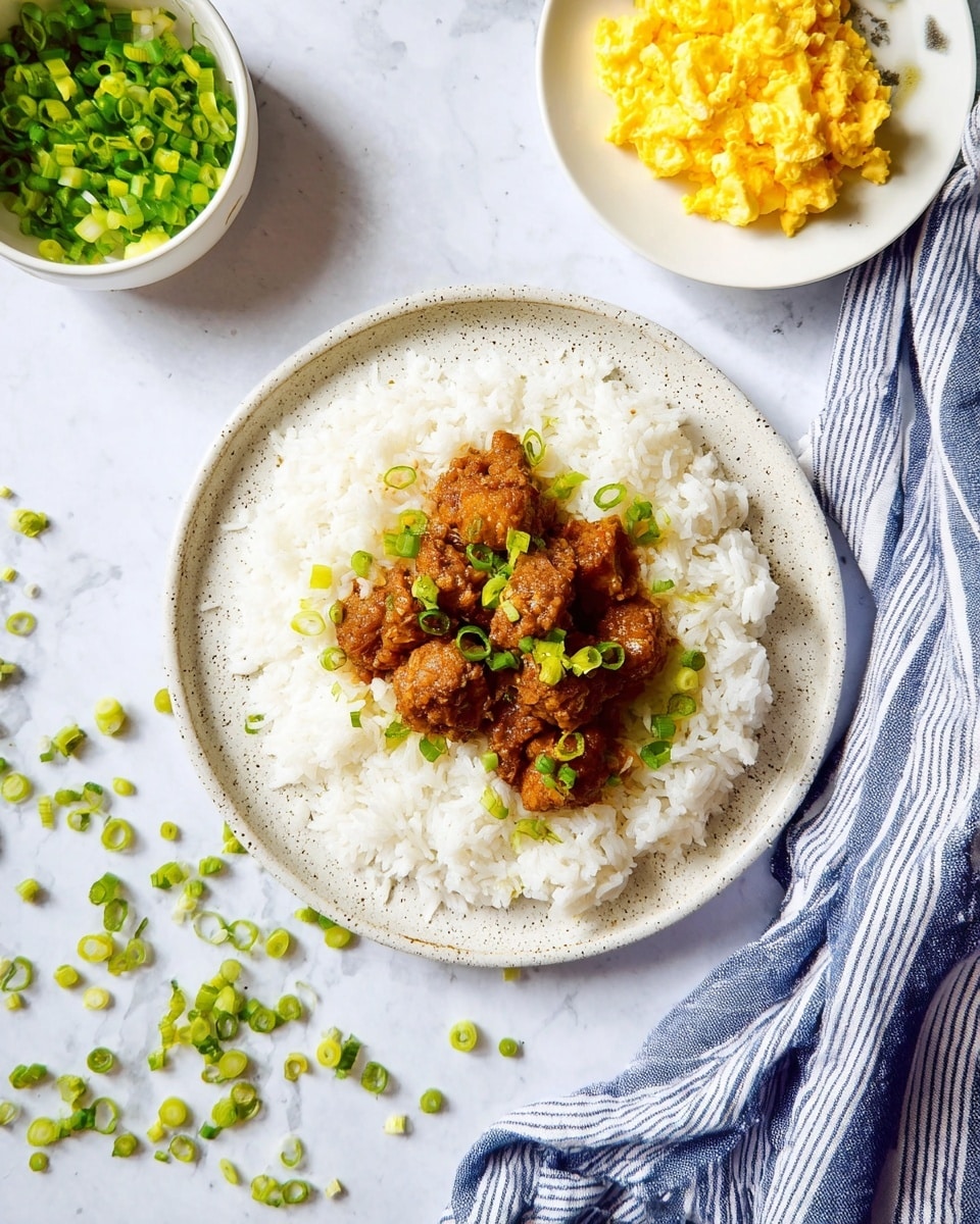 I typically serve these meatballs over steamed jasmine rice, which soaks up every last bit of that amazing sauce. On lighter days, cauliflower rice pairs beautifully without taking away from the flavors. For veggies, simple steamed broccoli or roasted snap peas add a refreshing crunch and color contrast on the plate.