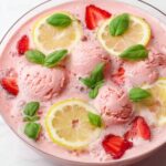 A refreshing and vibrant Pink Strawberry Sherbet Punch perfect for parties and summer gatherings. This delightful punch combines strawberry sherbet with lemon-lime soda, fruit punch, pineapple juice, and lemonade concentrate for a fruity, creamy, and slightly fizzy treat. Garnished with fresh strawberries, lemon slices, and basil leaves, it’s an easy-to-make crowd-pleaser that can be served in individual cups.