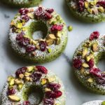 Delightfully festive Pistachio Cranberry Wreath Cookies, combining tender buttery dough with crunchy pistachios and sweet dried cranberries. These charming cookies are shaped like wreaths and dusted with powdered sugar for a perfect holiday treat.