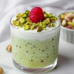 This Pistachio Overnight Oats recipe offers a creamy, nutritious, and easy-to-make breakfast featuring the rich flavor of pistachio butter combined with quick oats and chia seeds. Sweetened naturally with maple syrup and enhanced with vanilla extract, it’s a perfect make-ahead meal that you can top with non-dairy yogurt, fresh raspberries, and chopped pistachios for added texture and flavor.