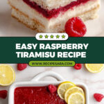 This Raspberry Tiramisu is a refreshing twist on the classic Italian dessert, featuring layers of delicate ladyfinger cookies soaked in homemade raspberry syrup, rich mascarpone cream, and vibrant raspberry jam. Finished with fresh raspberries and lemon slices for a bright, fruity finish, it’s a perfect dessert for berry lovers looking for a sophisticated yet approachable treat.