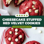 Delight in these Cheesecake Stuffed Red Velvet Cookies, featuring rich, red velvet cookie dough enveloping a creamy cheesecake filling. These cookies offer a perfect balance of decadent cocoa flavor and smooth cheesecake, ideal for dessert lovers looking for a luscious twist on classic cookies.