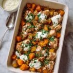 This Roast Chicken with Pumpkin, Sage, and Red Onion is a comforting one-pan dish that combines tender, golden-brown chicken with sweet roasted pumpkin, savory sage, and caramelized red onions. Drizzled with a flavorful blend of olive oil, balsamic vinegar, and honey, this easy-to-make roast is perfect for a wholesome family dinner. The garlic cloves roast to soft perfection, adding subtle sweetness and depth. It’s naturally gluten-free and dairy-free, making it suitable for many dietary preferences.