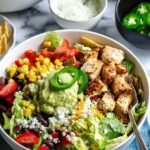 - Assemble the Salad Base: In a large salad bowl, add chopped romaine and all the chopped vegetables (tomatoes, bell pepper, jalapeño, green onions), black beans, corn, and cooked quinoa. Mix gently.