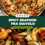 Seafood Fra Diavolo is a spicy Italian-American pasta dish featuring bucatini tossed in a vibrant tomato sauce loaded with scallops, shrimp, clams, and crab meat. Infused with garlic, shallots, crushed red pepper, white wine, and fresh herbs like parsley and basil, this seafood medley delivers a perfectly balanced, fiery flavor that is both comforting and elegant.